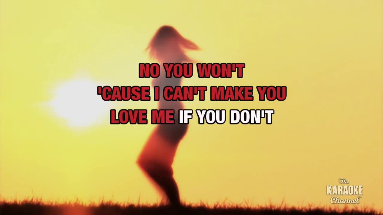 Don't patronize me. 'Cause I can't make you love me if you don't. You can't make your heart feel something it won't. Here in the dark, in these final hours. I will lay down my heart and I'll feel the power. But you won't, no you won't. 'Cause I can't make you love me, if you don't. I'll close my eyes, then I won't see.