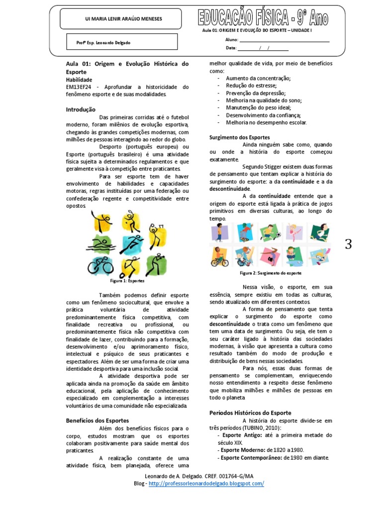 Aula 01 ORIGEM E EVOLUCAO DO ESPORTE PDF Esportes Física