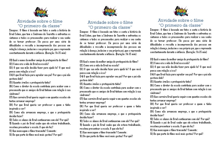 Atividade Sobre o Filme O Primeiro Da Classe PDF