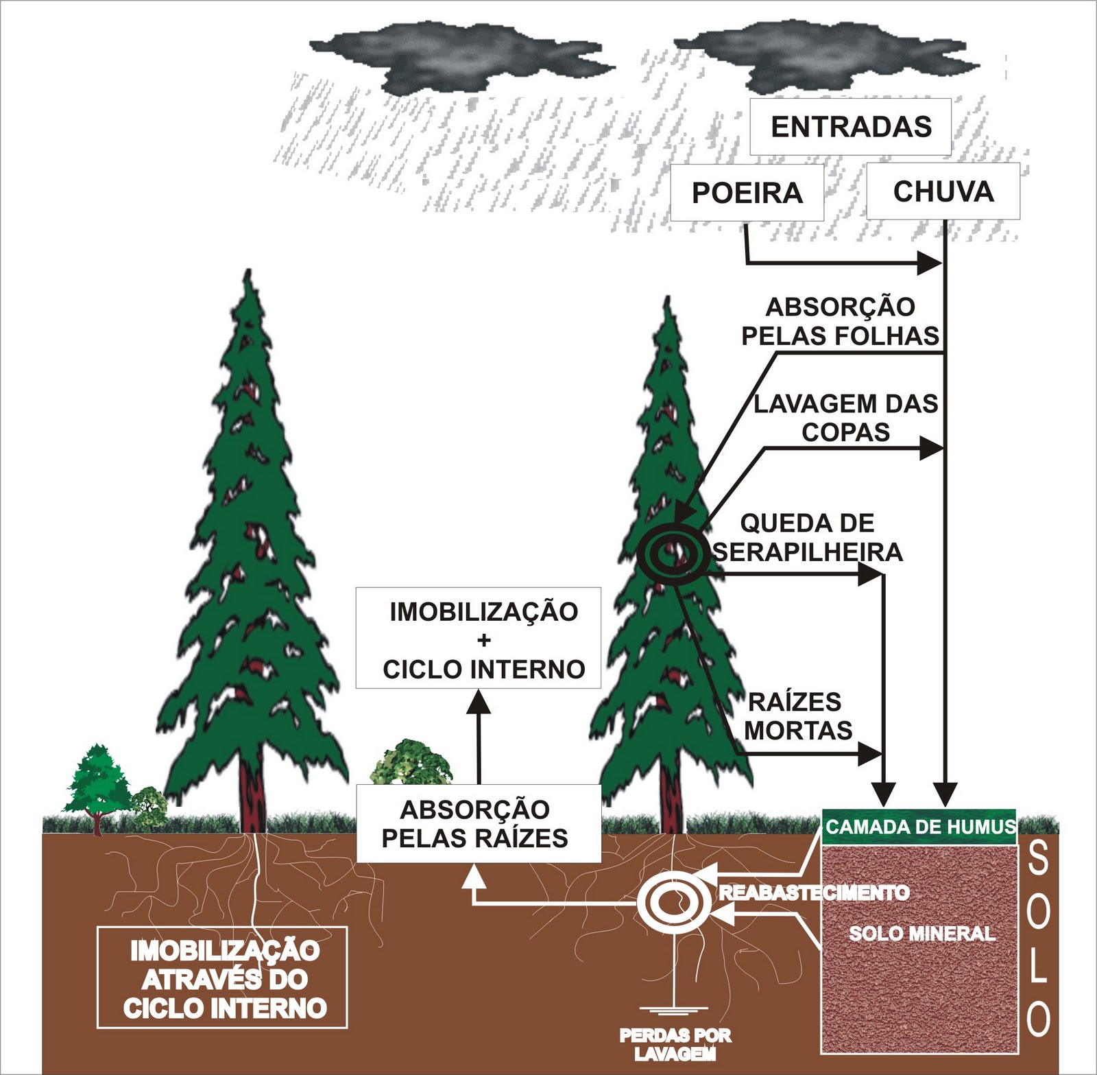 A importância da ciclagem de nutrientes nas florestas. Entende-se como ciclagem de nutrientes o processo de absorção dos nutrientes minerais disponíveis no solo pelas plantas de um determinado ecossistema, sua translocação interna nesses vegetais e o retorno desses nutrientes acumulados na fitomassa (massa dos vegetais) novamente para o.