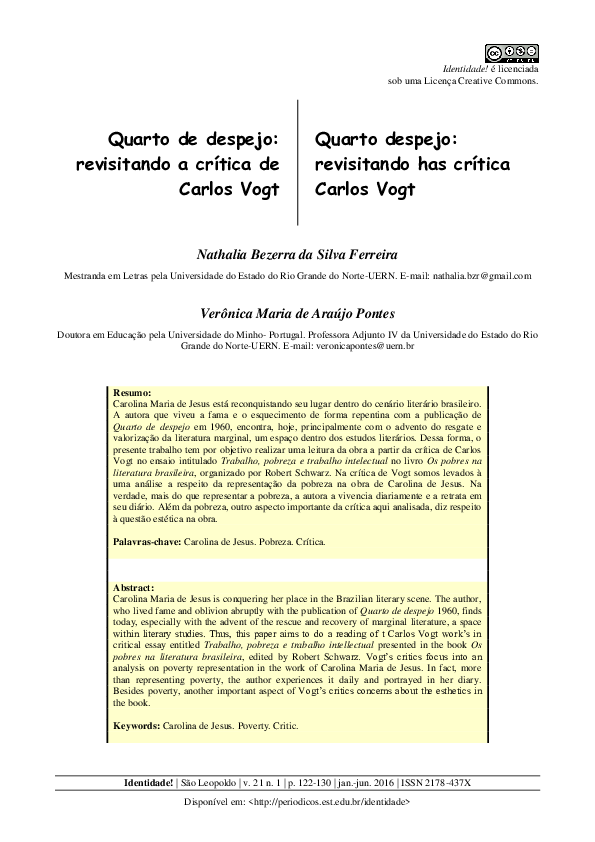 (PDF) Quarto De Despejo Revisitando a Crítica De Carlos Vogt Verônica Pontes Academia.edu
