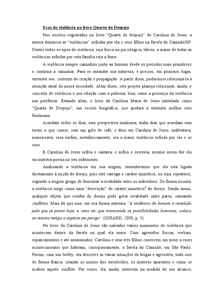 Ecos Da Violência No Livro Quarto de Despejo PDF Violência Pobreza